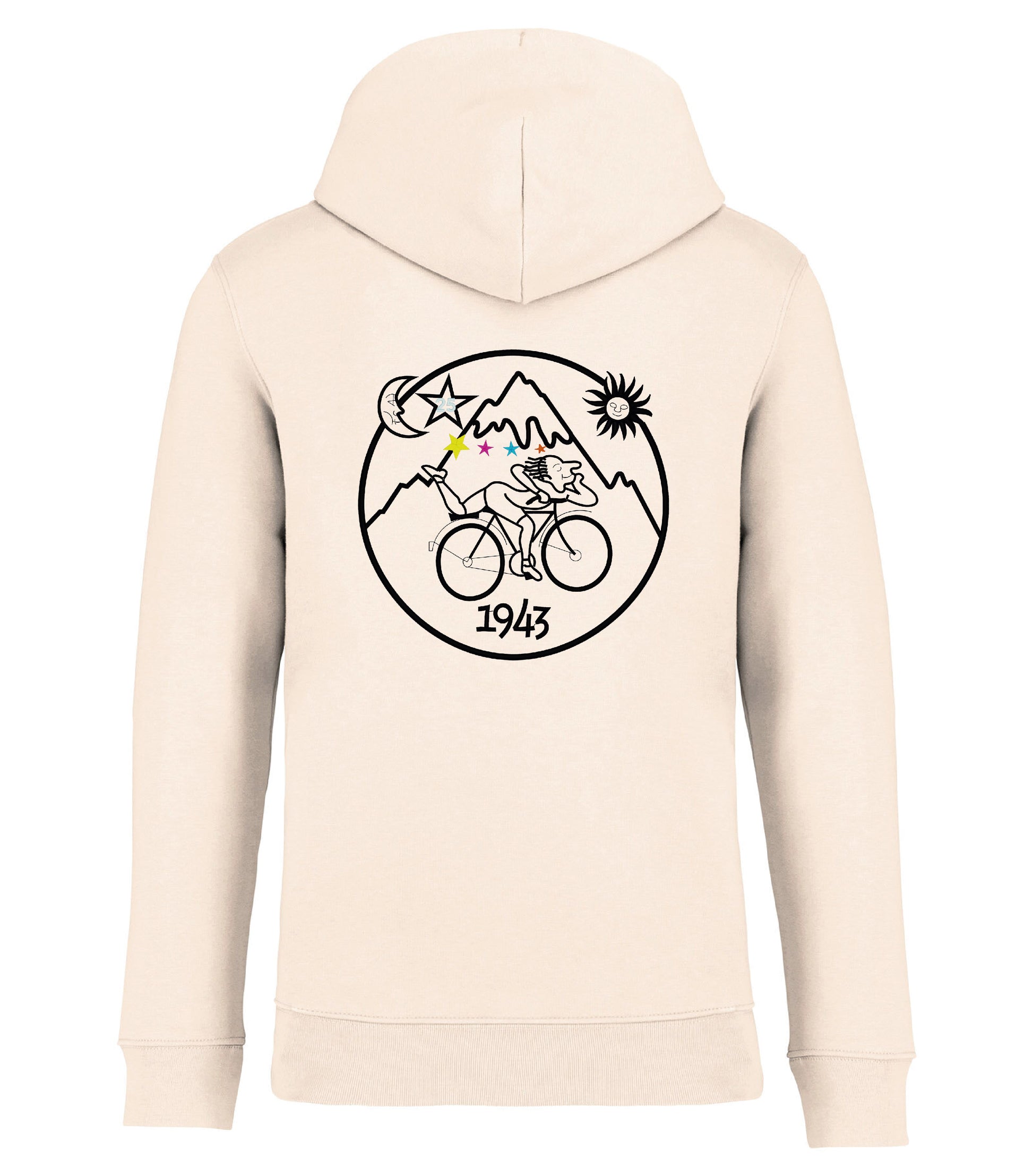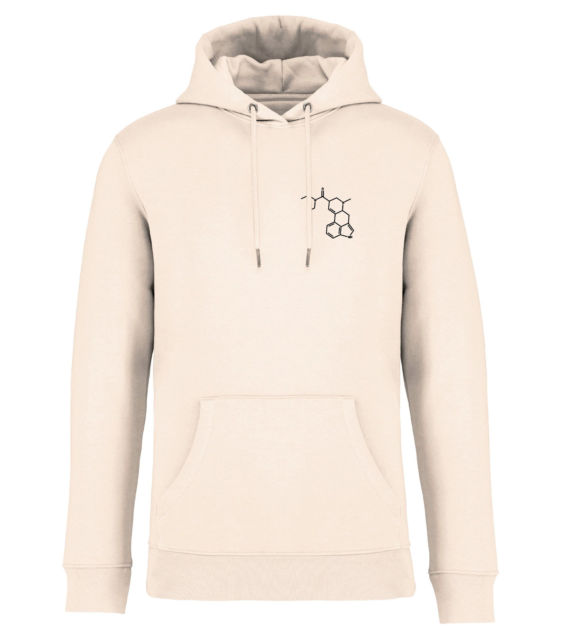 Unisex hoodie tillverkad av ekologisk ringspunnen kammad bomull och återvunnen polyester. 3 lagers borstat LSF-behandlat (Low Shrinkage Fleece: pre-shrunk fleece) tyg. Rak modell. Fodrad huva med dragsko. Runt dragsko med spetsar och öljetter av återvunnen metall. Känguruficka. 1×1 ribbstickning vid nederkant och ärmslut. Dubbla översömmar på ärmslut, ärmhål och nederkant. Halvmåne bak och inre tejpad hals för ökad komfort..