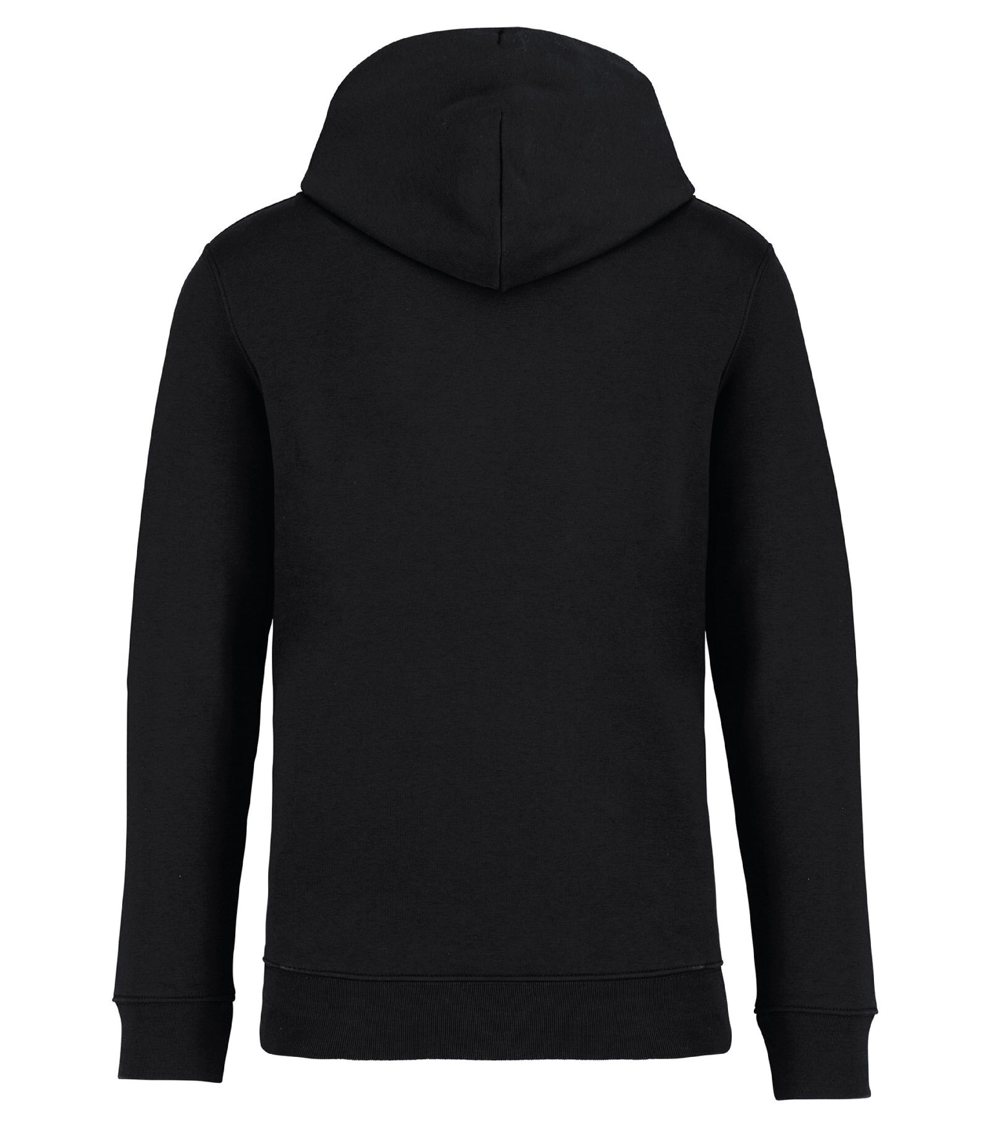 Unisex hoodie tillverkad av ekologisk ringspunnen kammad bomull och återvunnen polyester. 3 lagers borstat LSF-behandlat (Low Shrinkage Fleece: pre-shrunk fleece) tyg. Rak modell. Fodrad huva med dragsko. Runt dragsko med spetsar och öljetter av återvunnen metall. Känguruficka. 1×1 ribbstickning vid nederkant och ärmslut. Dubbla översömmar på ärmslut, ärmhål och nederkant. Halvmåne bak och inre tejpad hals för ökad komfort..